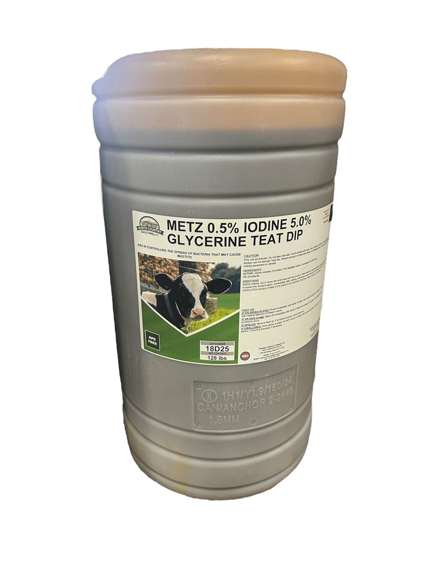 Metz ½% Iodine 5% Glycerin, is an effective Pre/Post dip formulation that may be applied by Dipping, Spraying, or Foaming.