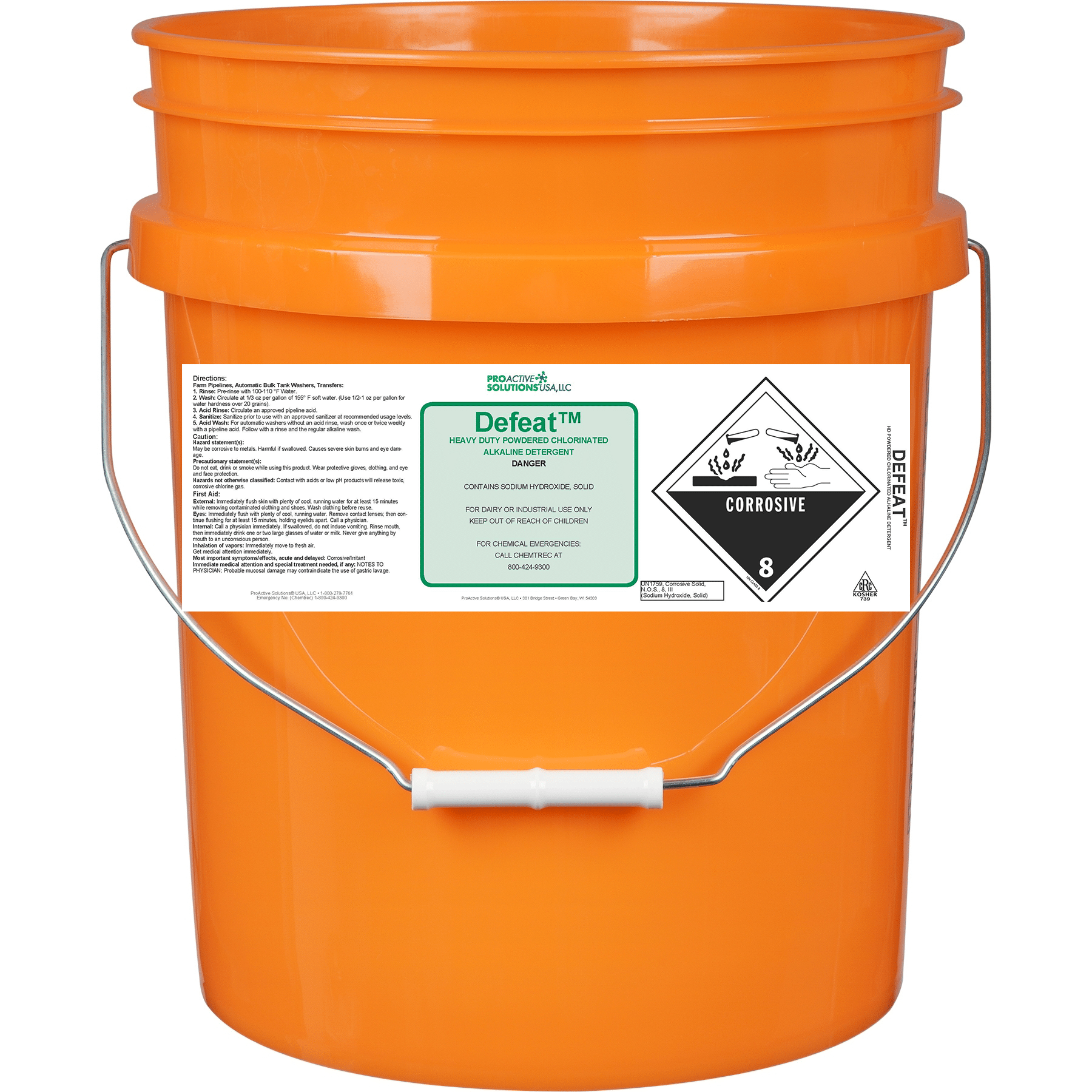 Defeat™ is a heavy-duty powdered chlorinated alkaline detergent for use in farm pipelines, automatic bulk tank washers and other CIP applications.