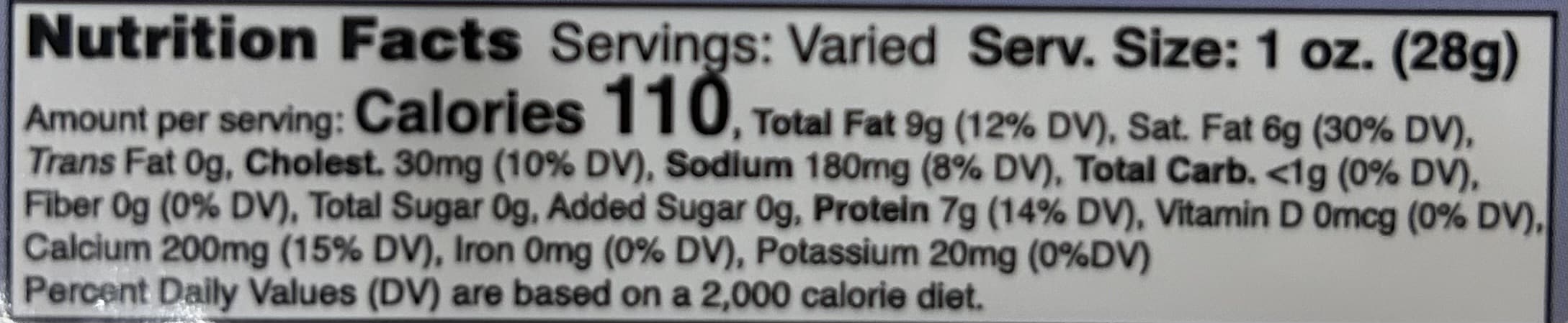 Ingredients: Pasteurized milk, Cultures, Salt, Enzymes